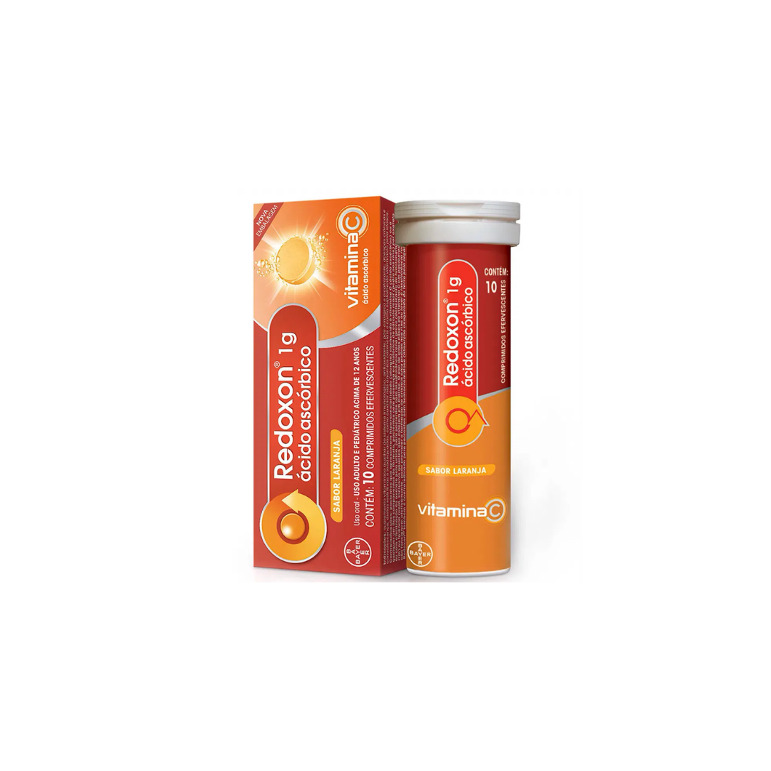 Redoxon 1g é indicado como suplemento diário de Vitamina C, para auxiliar no funcionamento do sistema imunológico, na redução do risco, duração e intensidade de gripes e resfriados; pós-cirúrgico e cicatrizante; doenças crônicas e convalescença; dietas restritivas e inadequadas; auxílio em caso de anemias carenciais. Redoxon também é indicado como suplemento vitamínico para idosos. Os comprimidos efervescentes de Redoxon 1g dissolvem rapidamente na água e é indicado para adultos e crianças com mais de 12 anos. Vitamina C: ajuda a fortalecer as barreiras físicas do sistema imunológico;