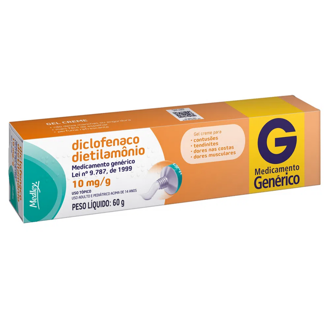 Medley Diclofenaco Dietilamônio 10Mg/G Gel Creme Com 60g. Analgésico e anti-inflamatório.
