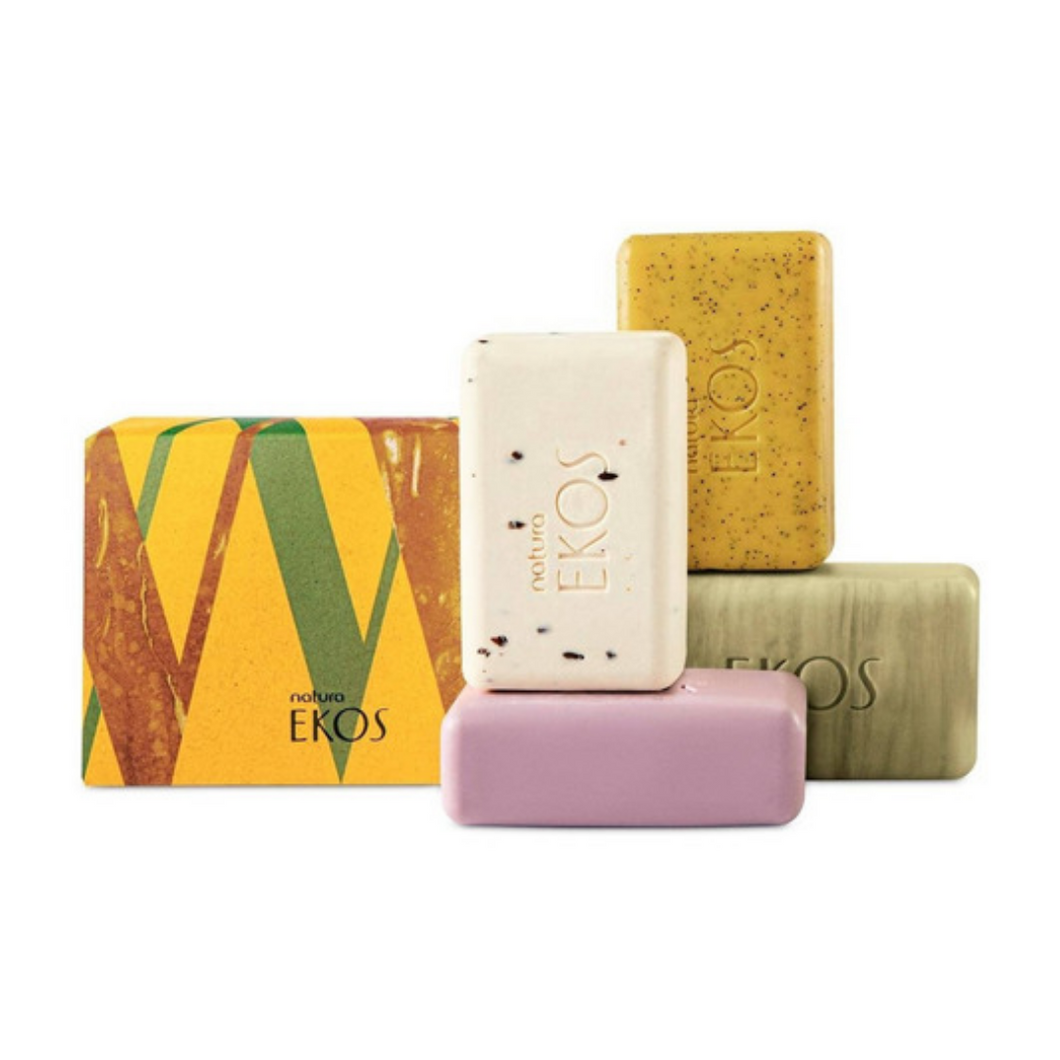 Os Sabonetes Natura Ekos proporcionam múltiplas sensações e amplo cuidado com você e a Amazônia. Em cada barra, óleo 100% vegetal puro da Amazônia e fórmulas biodegradáveis exclusivas, que protegem, perfumam e limpam sem ressecar, mantendo a hidratação natural da pele. Esta caixa é uma ótima opção para presente, com barras cremosas em quatro fragrâncias queridinhas de Natura Ekos.