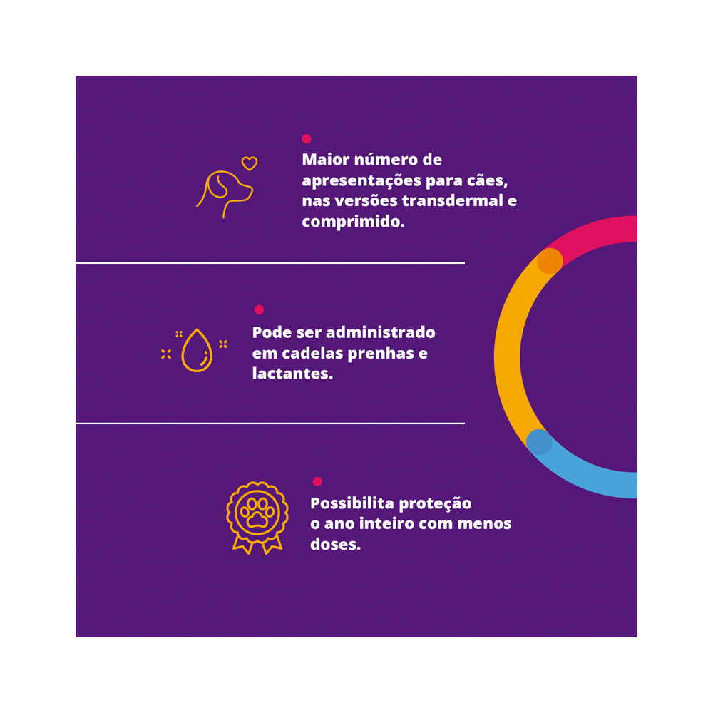 - Indicação Controle e prevenção de pulgas e carrapatos em cães com mais de 8 semanas de idade e peso corporal superior a 2k