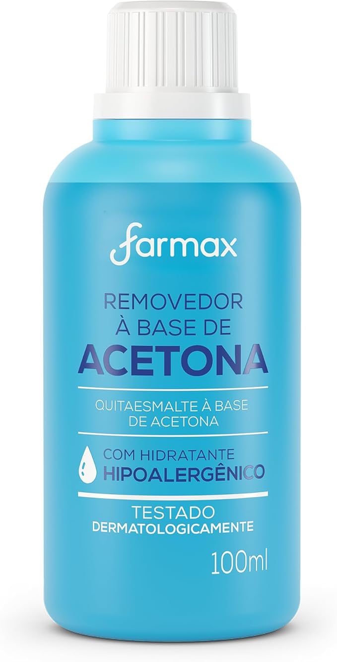 O Removedor de Esmalte com Acetona Farmax 100ml foi formulado para retirar o esmalte das unhas sem ressecar e causar danos às unhas. O produto tem como base a acetona, ingrediente com alta eficiência na remoção de esmaltes, mas também contém glicerina, que hidrata as unhas e cutículas.