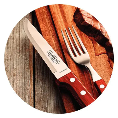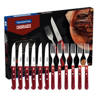 Jogo de Churrasco em Aço Inox Jumbo Tramontina Polywood Vermelho 12 Peças