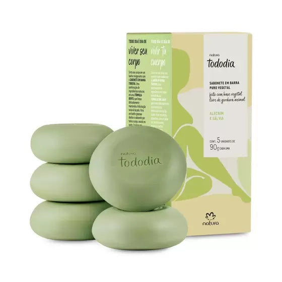 O Sabonete em Barra Tododia Alecrim e Sálvia promoveuma sensação agradável, enquanto limpa e deixa a pele macia