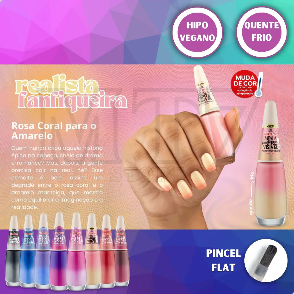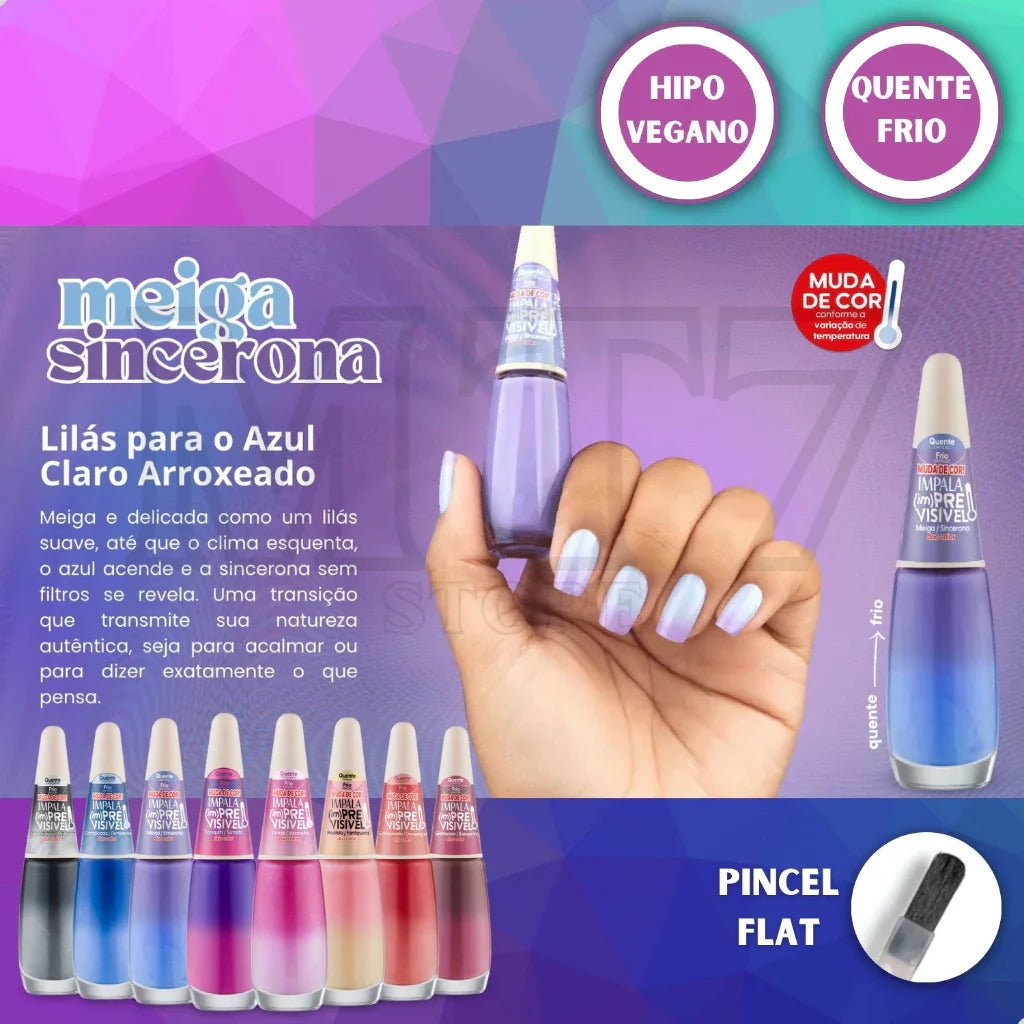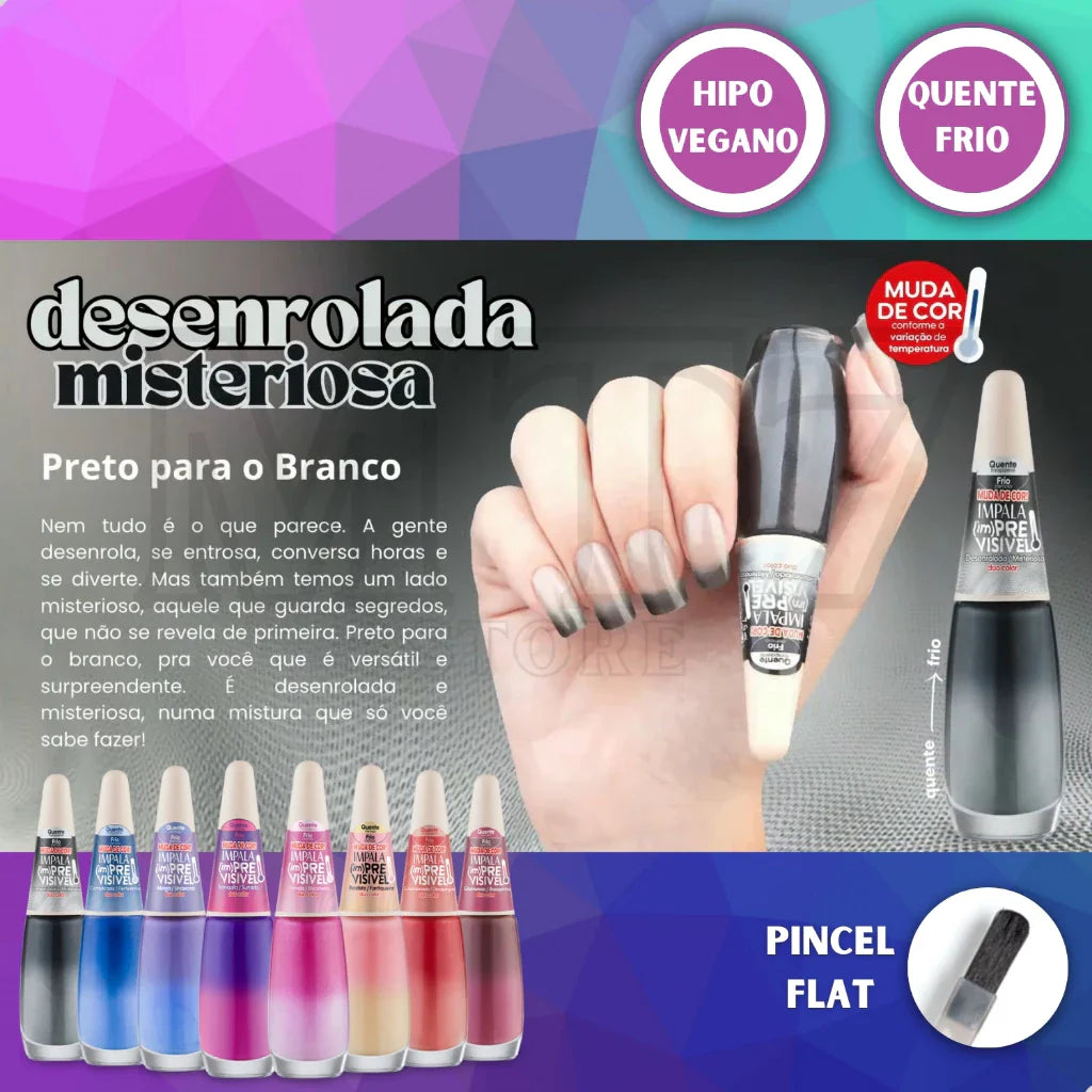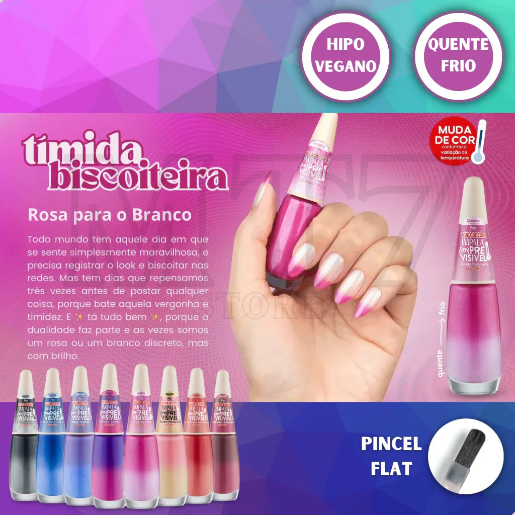 Uma linha de esmaltes que mudam de cor conforme a temperatura do corpo e do ambiente, refletindo as muitas camadas da sua personalidade em contrastes inesperados. De Tímida Biscoiteira...