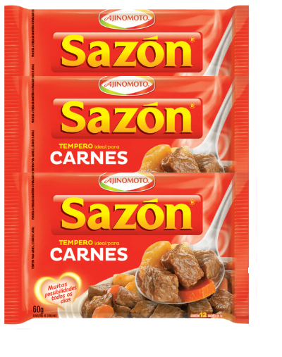 Todo mundo ama SAZÓN® Vermelho! Feito com colorífico, alho, cebola, orégano, salsa e louro, os pratos com carnes ganham muito mais sabor para você e sua família!