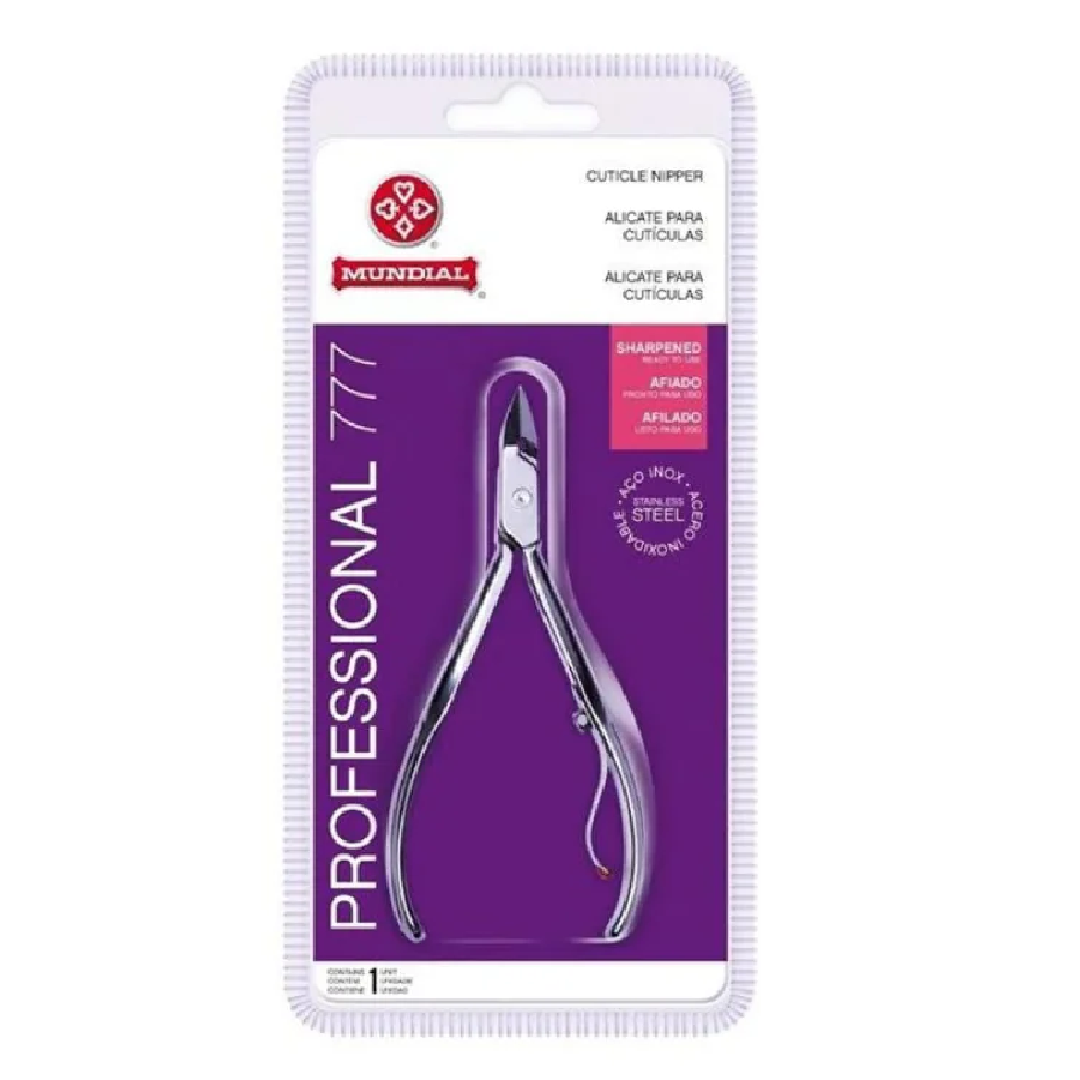 Modo de usar: Utilize o alicate mundial 777 para tirar as cutículas previamente preparadas.